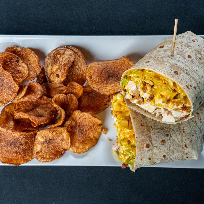 Grilled chicken and crispy bacon snuggled in a garlic herb tortilla with fresh lettuce, tomato, and creamy ranch.