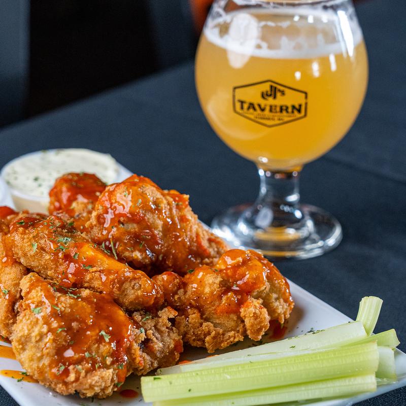 Hand-breaded and golden fried, served with Buffalo or BBQ sauce and your choice of blue cheese or ranch.