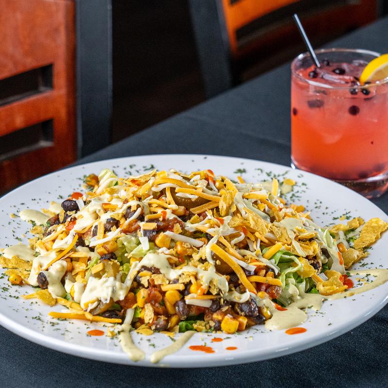 Crisp romaine topped with our house-made black bean & corn salsa, jalapeños, crunchy tortilla strips, and a sprinkle of shredded cheddar, served with creamy avocado ranch on the side • Add: Chicken +$4.00 | Black Bean Burger +$5.00